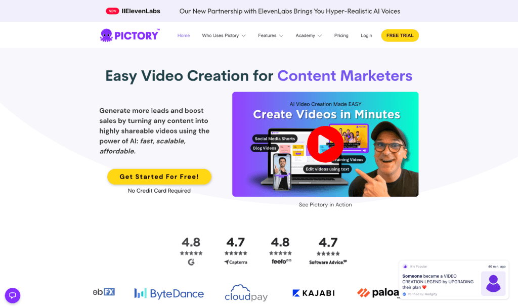 Pictory.ai is popular among content creators, marketers, businesses, and social media professionals.