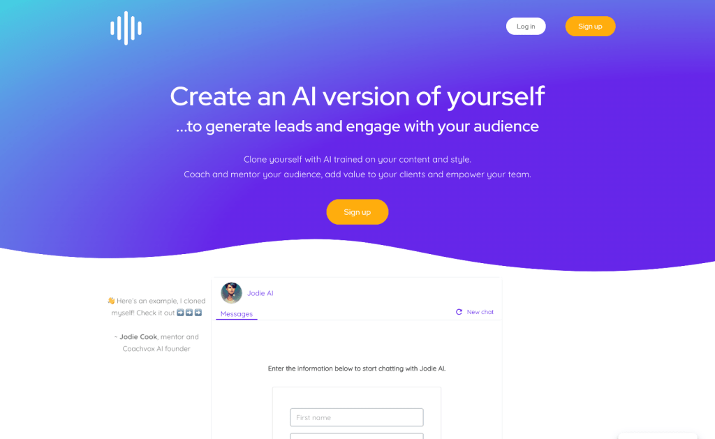 Coachvox AI is a unique tool for those looking to extend their influence and offer continuous, personalized guidance to their audience, clients, or team, using the power of AI.