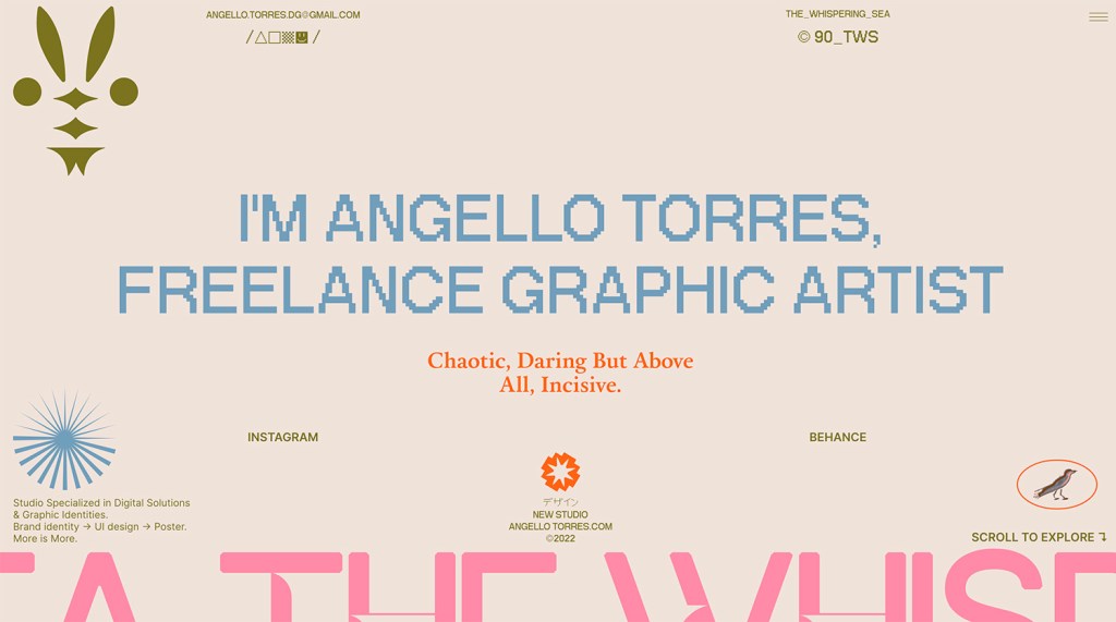 Angello has a very unique and modern portfolio with beautiful works of art, make sure to scroll down the homepage to see his amazing graphic design work and mix of different mediums. This is a great WordPress website to take much inspiration from, click on any portfolio grid and it will open into a new page where you can read and view more projects.